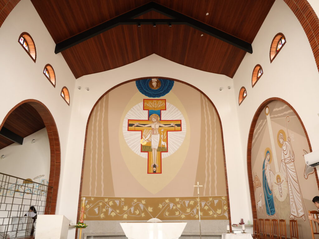 O crucifixo que evoca o de São Damião nesse Mosteiro bem mostra isso na Trindade que é revelada pelo Filho, e esse Mosteiro existe aqui do alto para nos lembrar sempre mais desse mistério que é a nossa origem e a nossa meta e que nos envolve diante do qual não somos apenas interlocutores, mas estamos incluídos pelo batismo, pela esperança, pela fé e a caridade.